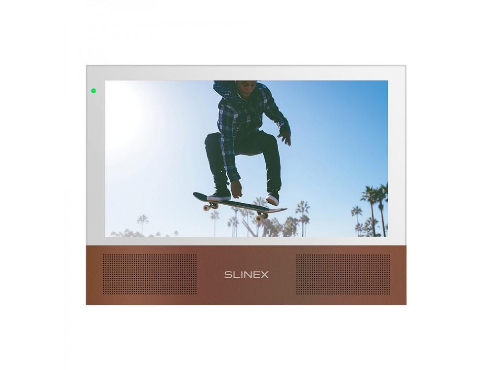 - Домофон Slinex Sonik 7 white оснащен цветным IPS-экраном с диагональю 7 дюймов и разрешением 1024*600 пикселей.
