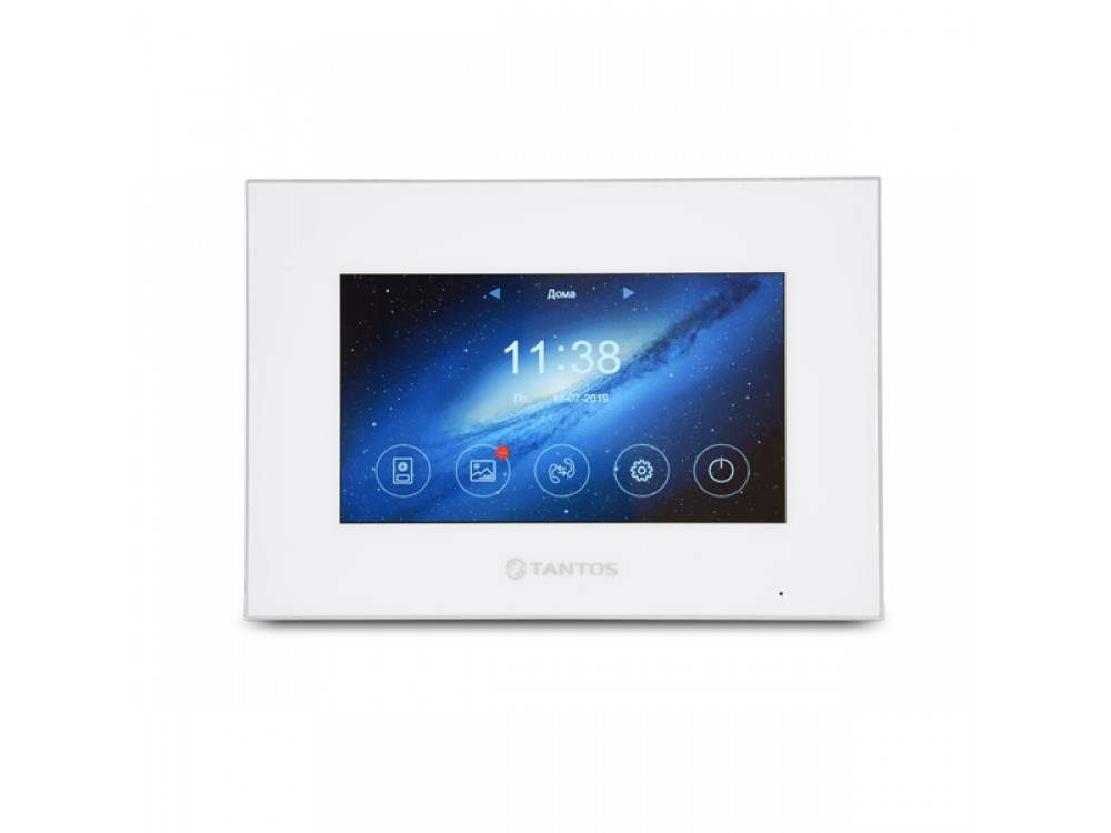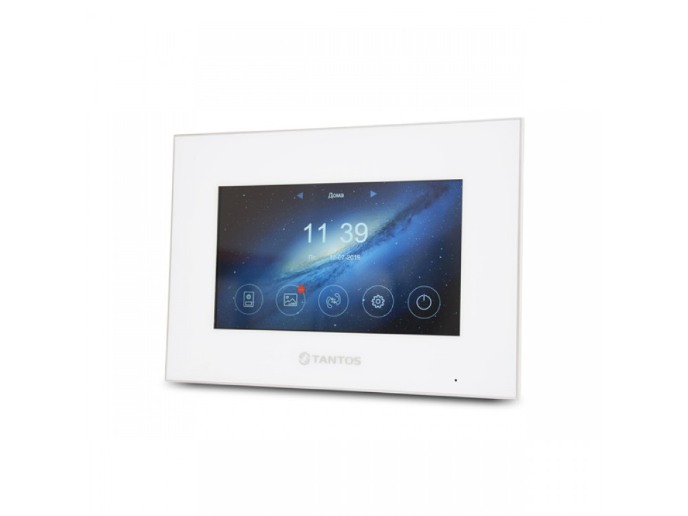 Видеодомофон Tantos Marilyn HD WiFi с цветным сенсорным 7 дюймовым IPS-экраном, встроенным Wi-Fi, записью кадров на Micro SD карту, возможностью подключения 2 вызывных панелей форматов CVBS/AHD и 2 AHD видеокамер. Цвет - белый.