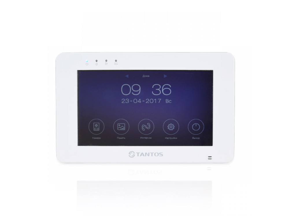 Видеодомофон Tantos Rocky 7" с цветным сенсорным 7 дюймовым TFT-экраном, встроенным Wi-Fi, записью кадров на SD карту, возможностью подключения 2 вызывных панелей и 2 аналоговых видеокамер. Цвет - белый.