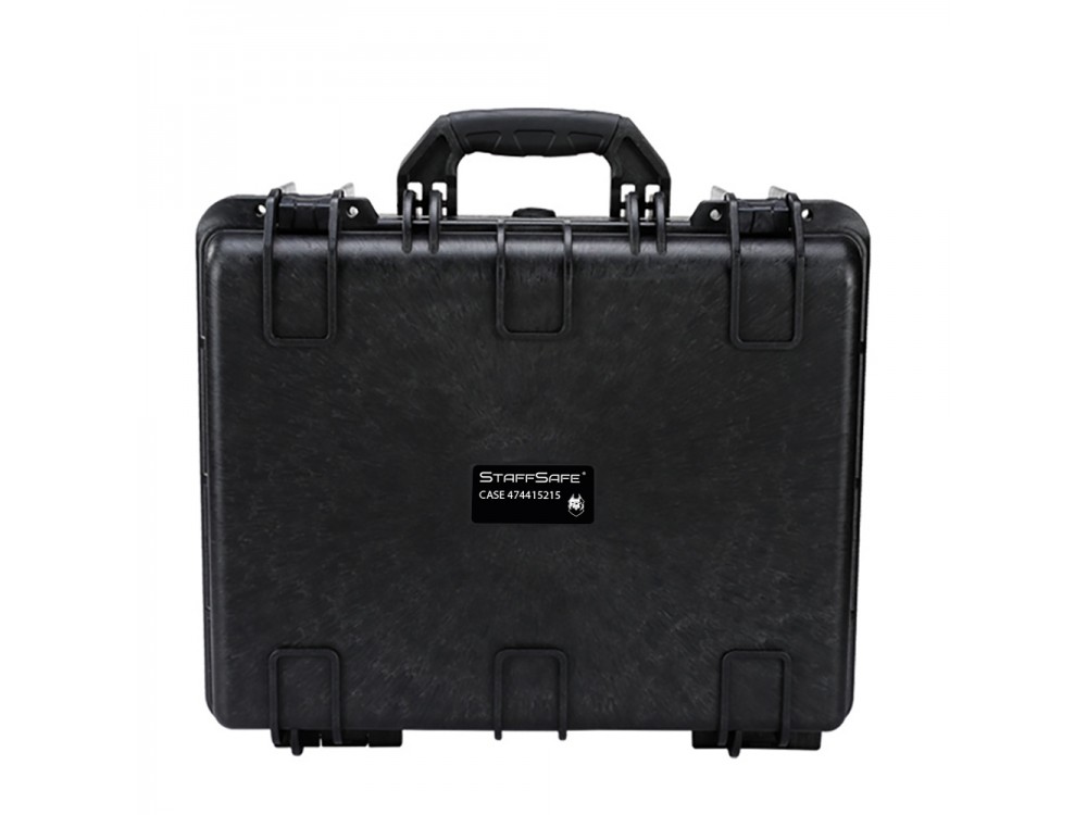 Кейс зброярський StaffSafe 474x415x215 — надійний і міцний контейнер для зберігання та транспортування пістолетів, штуцерів тп оптики. Призначений для безпечного перевезення й зберігання: жорстка конструкція захищає від ударів, внутрішні фіксатори та щільна вкладка запобігають зміщенню зброї, а можливість встановлення замка забезпечує високий рівень безпеки.