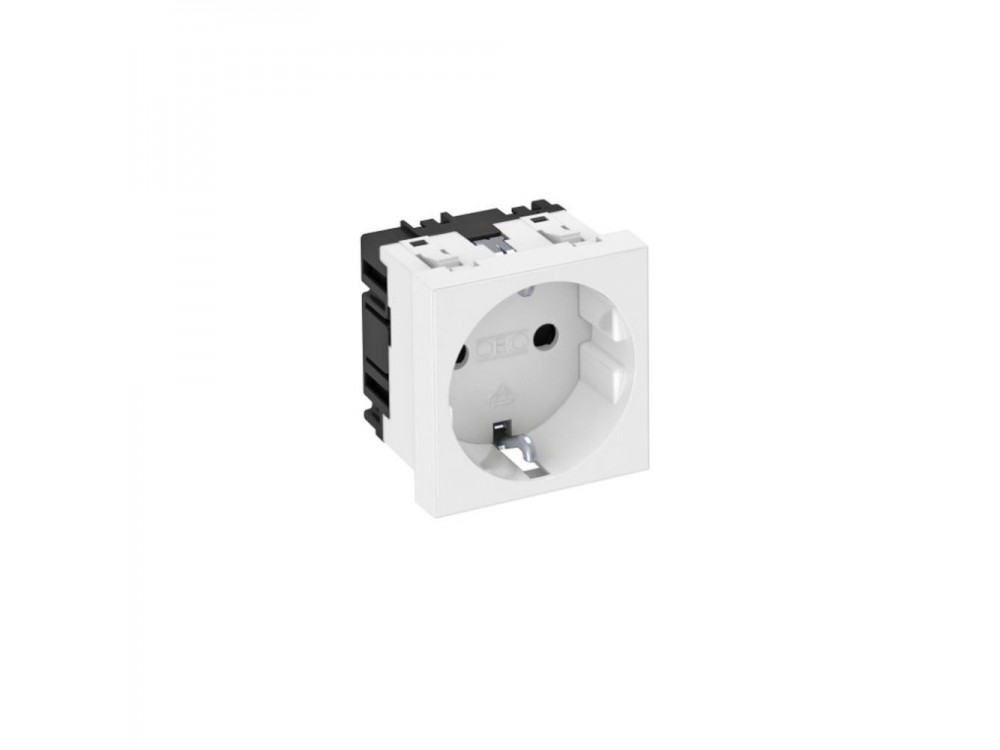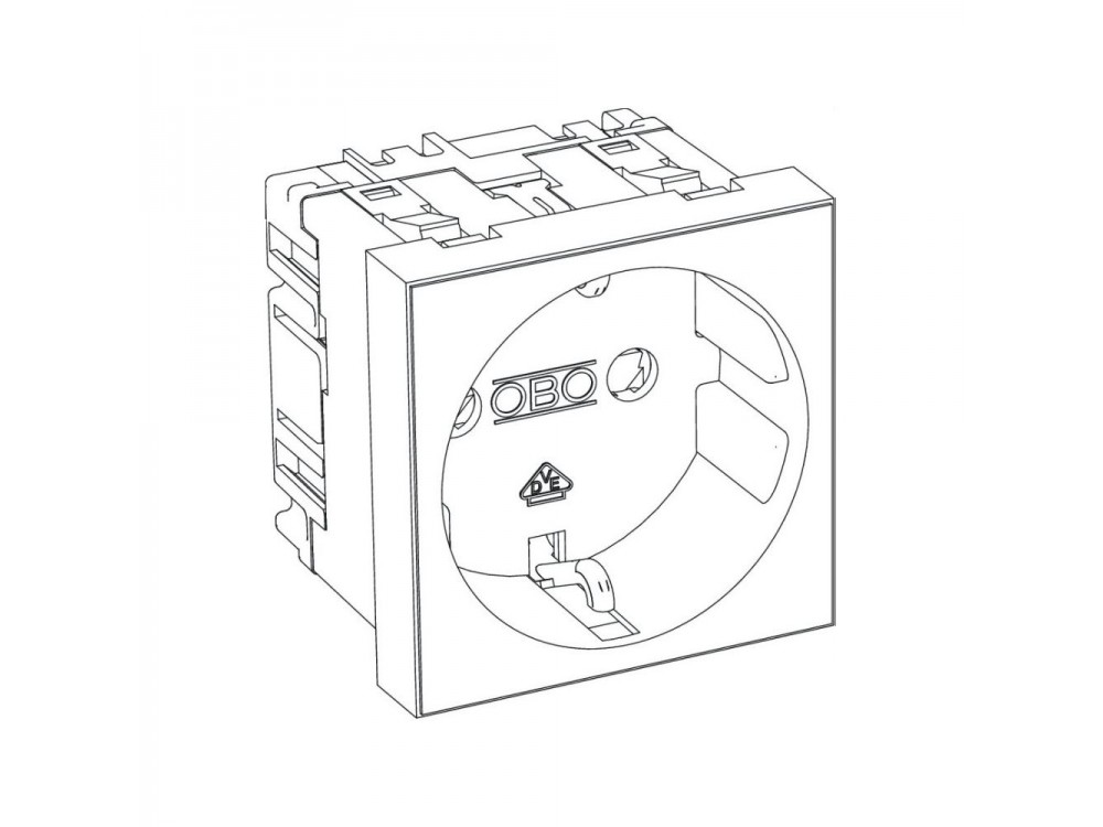 Розетка OBO Bettermann modul 45 с заземлением и шторками 250 В 16 A белая с повышенной защитой, со съемными клеммами, 2-полюсная, с клеммами подключения согласно IEC 60884-1