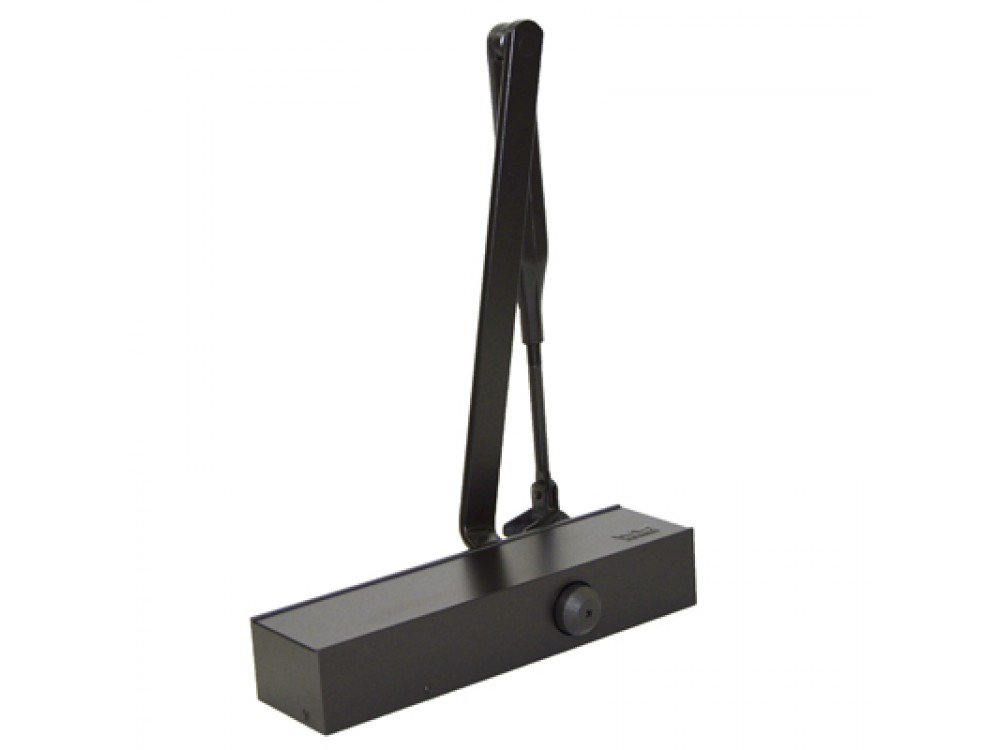 Доводчик DORMA TS-Profil верхнего расположения, накладного монтажа, классический, по технологии "шестерня-рейка". Цвет - коричневый, усилие - EN2/3/4+Size5. Максимальный вес двери: 120 кг (при ширине двери 900 мм), максимальная ширина двери 1250 мм. С функцией гидравлического амортизатора открывания (backcheck). Для стандартных и противопожарных дверей. Два независимых диапазона регулировки скорости закрывания. Монтаж на полотно со стороны петель или на коробку двери с противоположной стороны. Универсальный для левого и правого открывания. В комплекте со стандартным рычагом. Соответствие стандартам: EN1154, ГОСТ 538-2001, ГОСТ 5091-78, п.4, маркировка СЕ на корпусе доводчика.