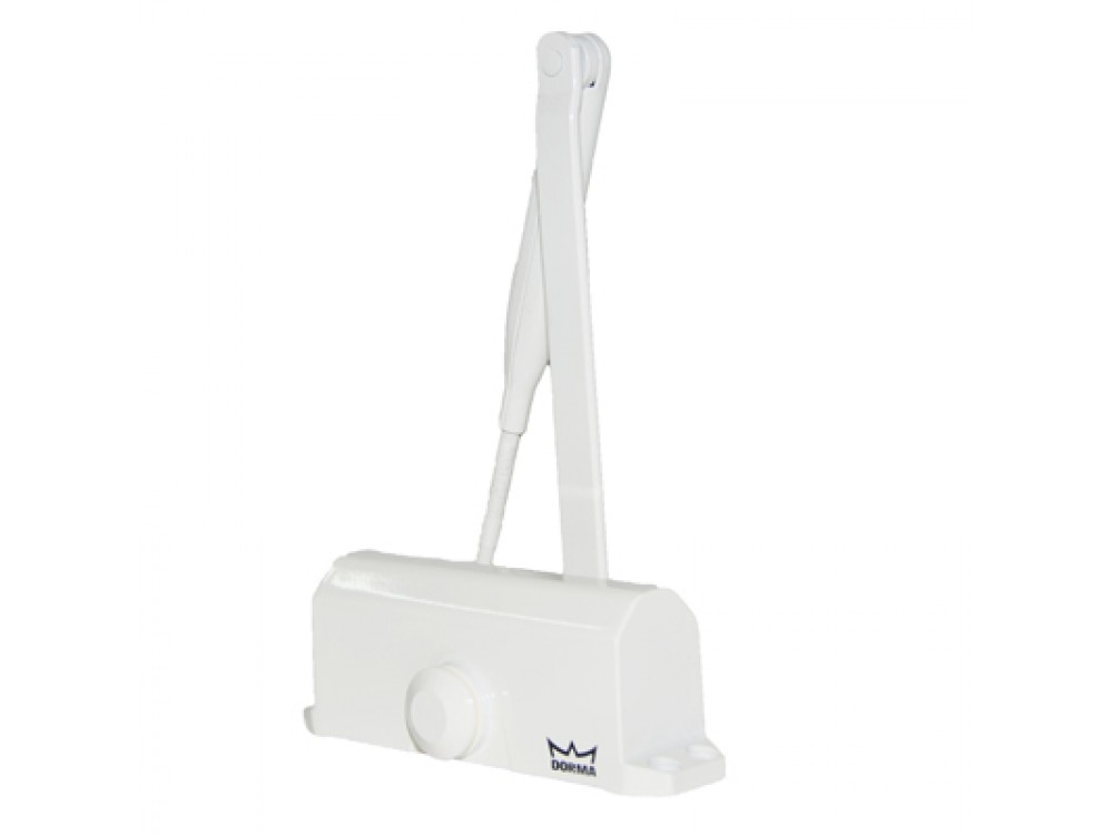 Доводчик DORMA TS77 верхнего расположения, накладного монтажа, классический, по технологии "шестерня-рейка". Цвет - белый, усилие - EN2. Макс. вес двери: 50 кг (при ширине двери 900 мм). Для стандартных и противопожарных дверей. Два независимых диапазона регулировки скорости закрывания. Монтаж на полотно со стороны петель или на коробку двери с противоположной стороны. Универсальный для левого и правого открывания.