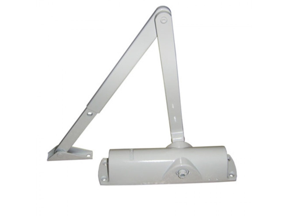 Доводчик дверной, макс. вес двери 60 кг, коленная тяга, ширина створок: до 950 мм, регулируемая скорость и сила закрытия, раб.темп.: от -20° до +40°С. Цвет: белый.