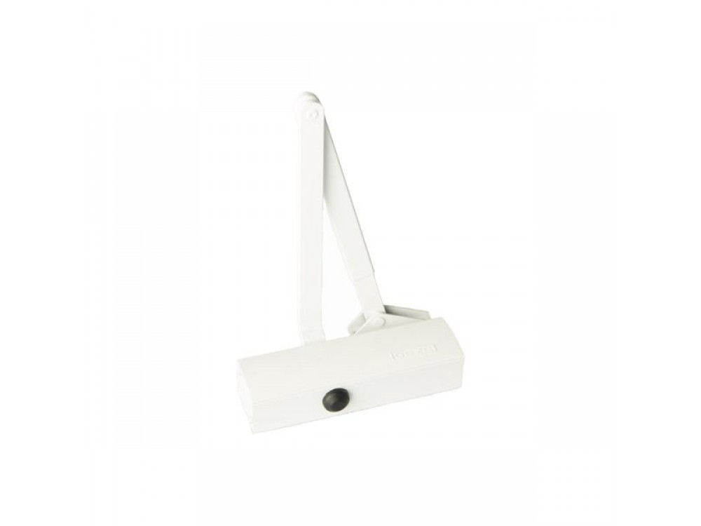 Доводчик дверной, макс. вес двери 80 кг, коленная тяга, ширина створок: до 1100 мм, регулируемая скорость и сила закрытия, раб.темп.: от -20° до +40°С. Цвет: белый.