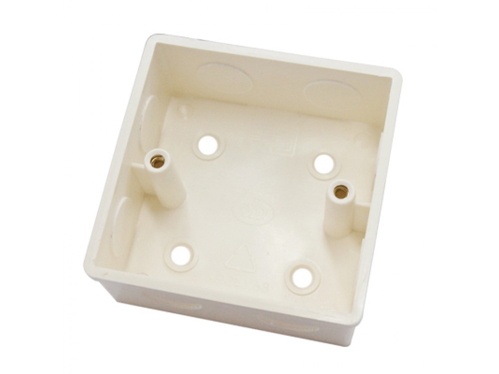 Короб под кнопку выхода, для врезного монтажа, огнеупорный пластик, вес: 70г, размер: 86 х 86 х 35 мм.