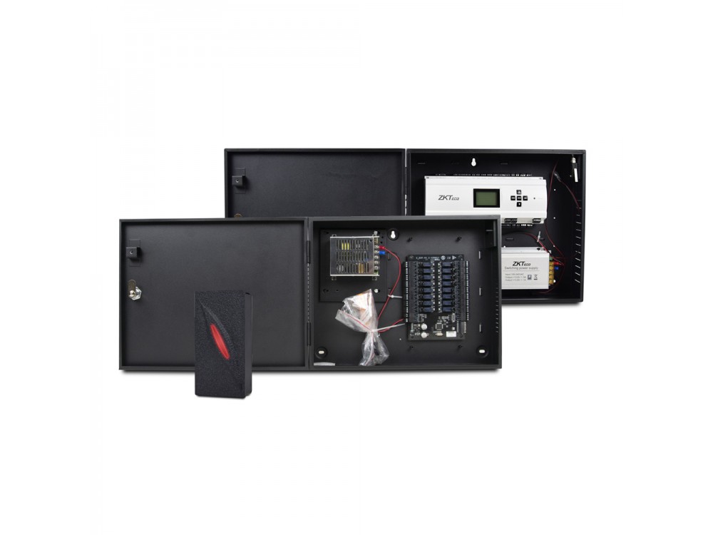 Комплект ZKTeco для ограничения доступа в лифт включает: контроллер управления лифтами в боксе ZKTeco EC10 Package B, плата расширения для 16 этажей в боксе ZKTeco EX16 Package A, влагозащищенный считыватель EM-Marine, Mifare и NFC ZKTeco KR310, программное обеспечение ZKBS-ELE-ONLINE-S1 для 1-10 контроллеров EC10.