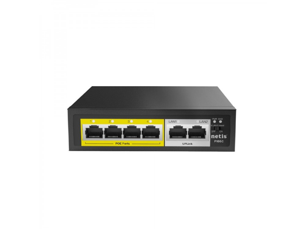 Неуправляемый 6-портовый PoE коммутатор Netis P106C с 4 портами PoE