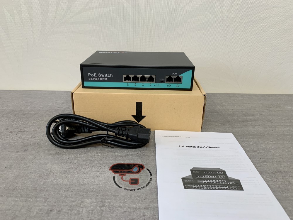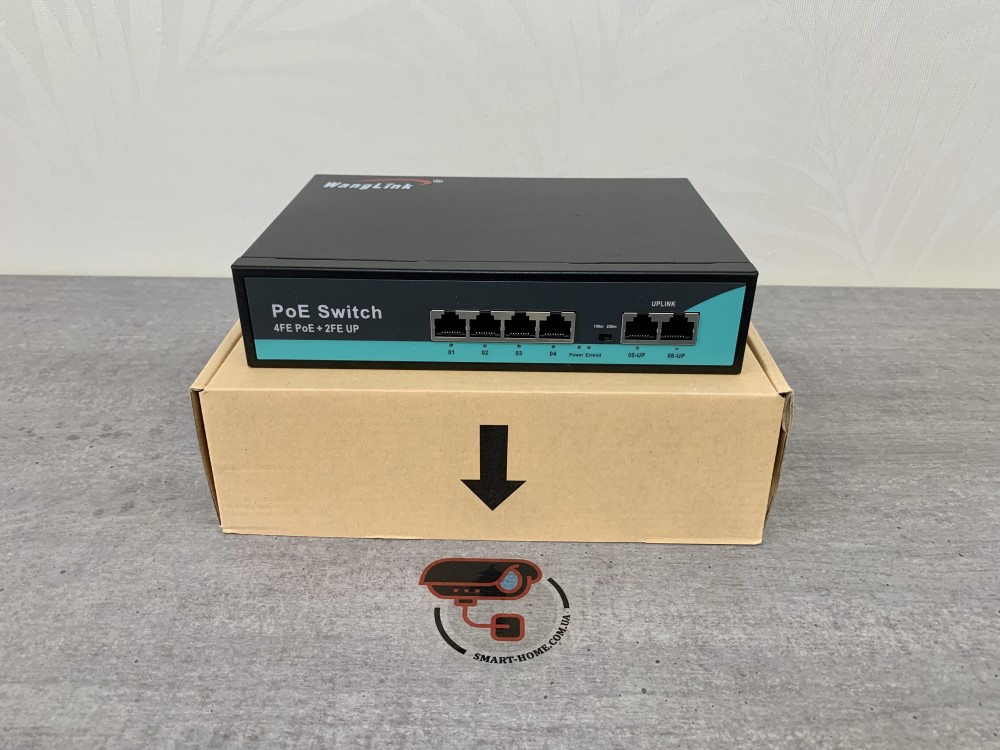 6-портовий некерований PoE комутатор WangLink WOR-4FE-2FE-65W з 4 портами РоЕ+, які можуть визначати і подавати живлення пристроям на базі стандарту IEEE 802.3af/at (Wi-Fi точка доступу, IP-телефон, IP-камера та ін.).