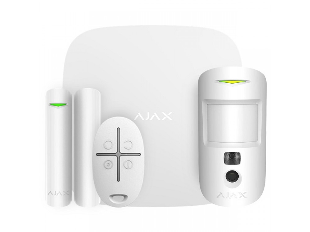 Комплект беспроводной сигнализации Ajax StarterKit Cam white – комплект сигнализации для обеспечения безопасности дома и офиса с фотоверификацией тревог, работающий по беспроводной технологии Jeweller / Wings.