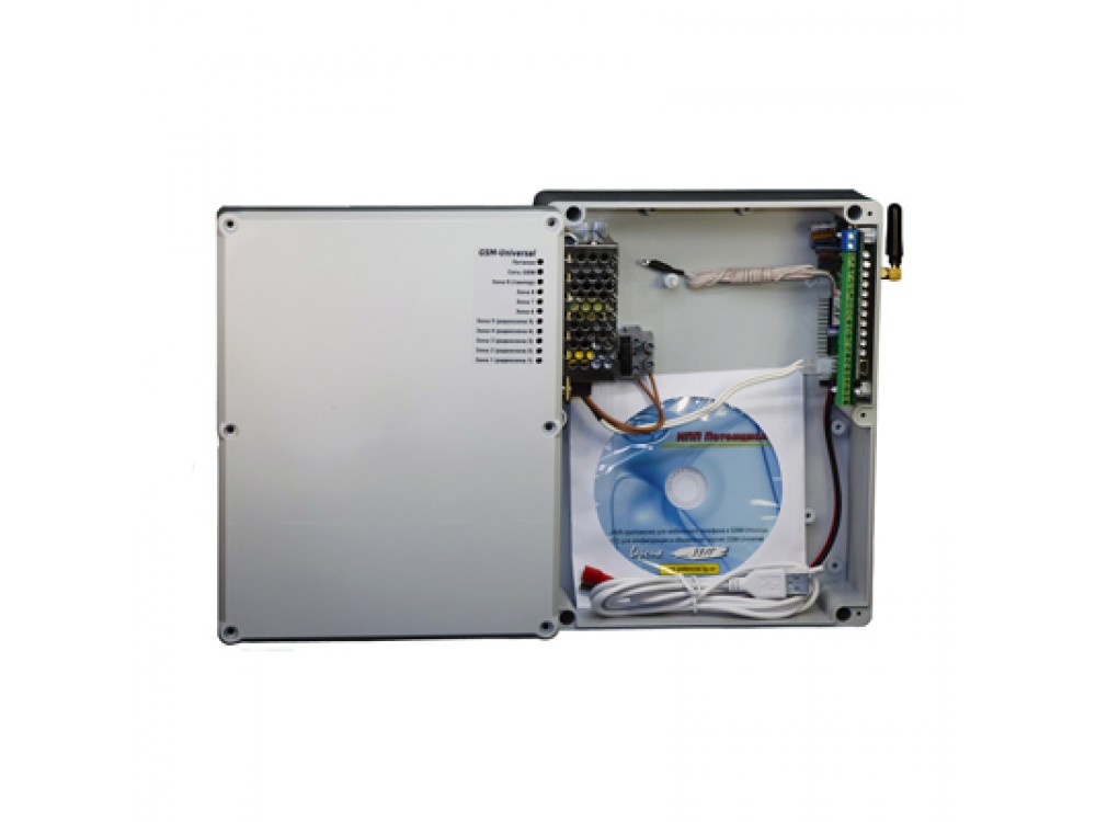 НАЗНАЧЕНИЕGSM Universal – централь GSM сигнализации. Благодаря модульному расширению можно управлять приборами отопления и освещения, получать информацию: с камер видеонаблюдения, с датчиков движения, температуры и тд.УПРАВЛЕНИЕУправлять прибором можно несколькими способами: с помощью цифровых клавиатур, брелоков (можно подключить до 20 брелоков), цифровых ключей iButton (можно подключить до 20 ключей), а также с мобильного телефона (звонки, СМС, DTMF-команды) или установив Android приложение для смартфона. Узнать о состоянии тревожных входов, выходов, баланса Sim-карты, а также о режиме работы сигнализации можно при помощи цифровой клавиатуры или мобильного телефона/смартфона.СОВМЕСТИМОСТЬУстройство совместимо с четырехпроводными датчиками любых производителей, например: датчики движения, вибрации, разбития, температуры, комбинированные, герконы, а также тревожные кнопки.ТЕХНИЧЕСКИЕ ХАРАКТЕРИСТИКИ