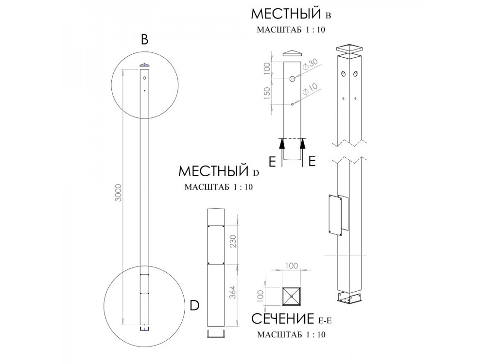 В верхней части столба находится по два отверстия с каждой стороны, отверстия диаметром: