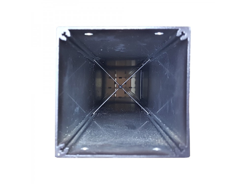 Верхний торец закрывает накладная алюминиевая крышка, которую можно снять для удобства монтажа оборудования. Крышка изнутри имеет конусные выступы для плотного удержания на трубе и формирует небольшие конвекционные щели.