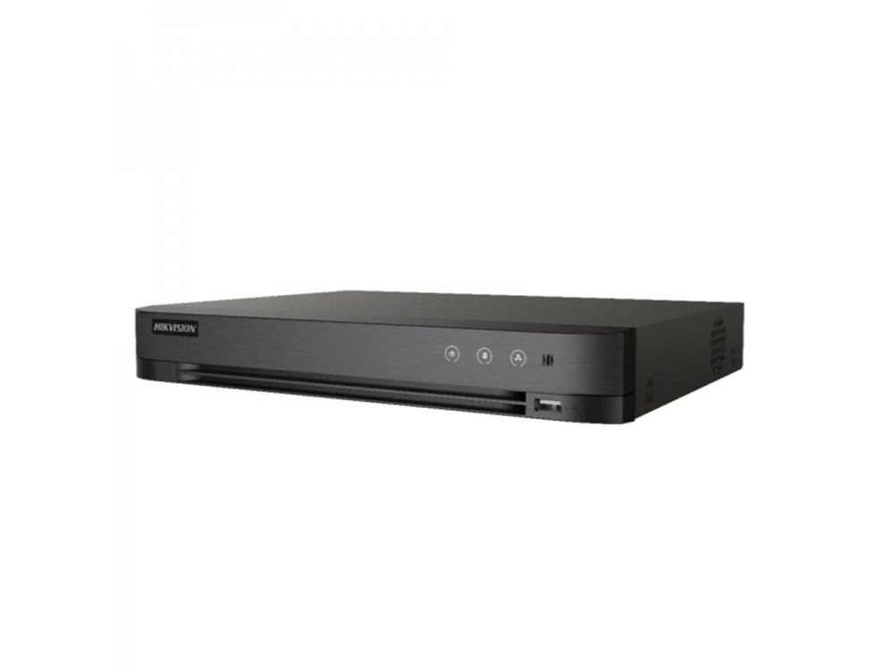 Видеорегистратор для HD-TVI системы видеонаблюдения iDS-7204HQHI-M1/S(C) на 4 канала с поддержкой видеоаналитики: распознавание целевых типов по всем каналам и защита периметра (2 канала), а также поддержкой записи аудио с камер по коаксиалу.